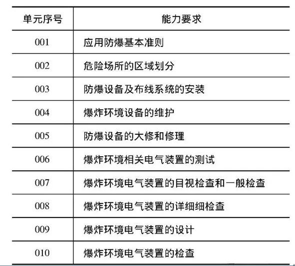 IECEx05人員能力認(rèn)證為從事爆炸性環(huán)境用防爆設(shè)備和相關(guān)工作人員的常識和技能是否達(dá)到IECEx要求、是否把握危險場所安全的作業(yè)程序、是否可以正確安裝、檢查、維護(hù)和修補(bǔ)防爆設(shè)備和系統(tǒng)供應(yīng)了證明。IECEx人員能力判定依據(jù)IECExOD501、IECExOD502、IECExOD503、IECExOD504操作文件進(jìn)行,具體能力單元見表1,每個單元對人員的經(jīng)歷、常識、技能都做了明確要求,懇求者需求具有一定的技能經(jīng)歷和訓(xùn)練履歷后才可懇求進(jìn)行判定,001單元為基礎(chǔ)單元,必須在001的基礎(chǔ)上單元能力懇求其他單元的判定。